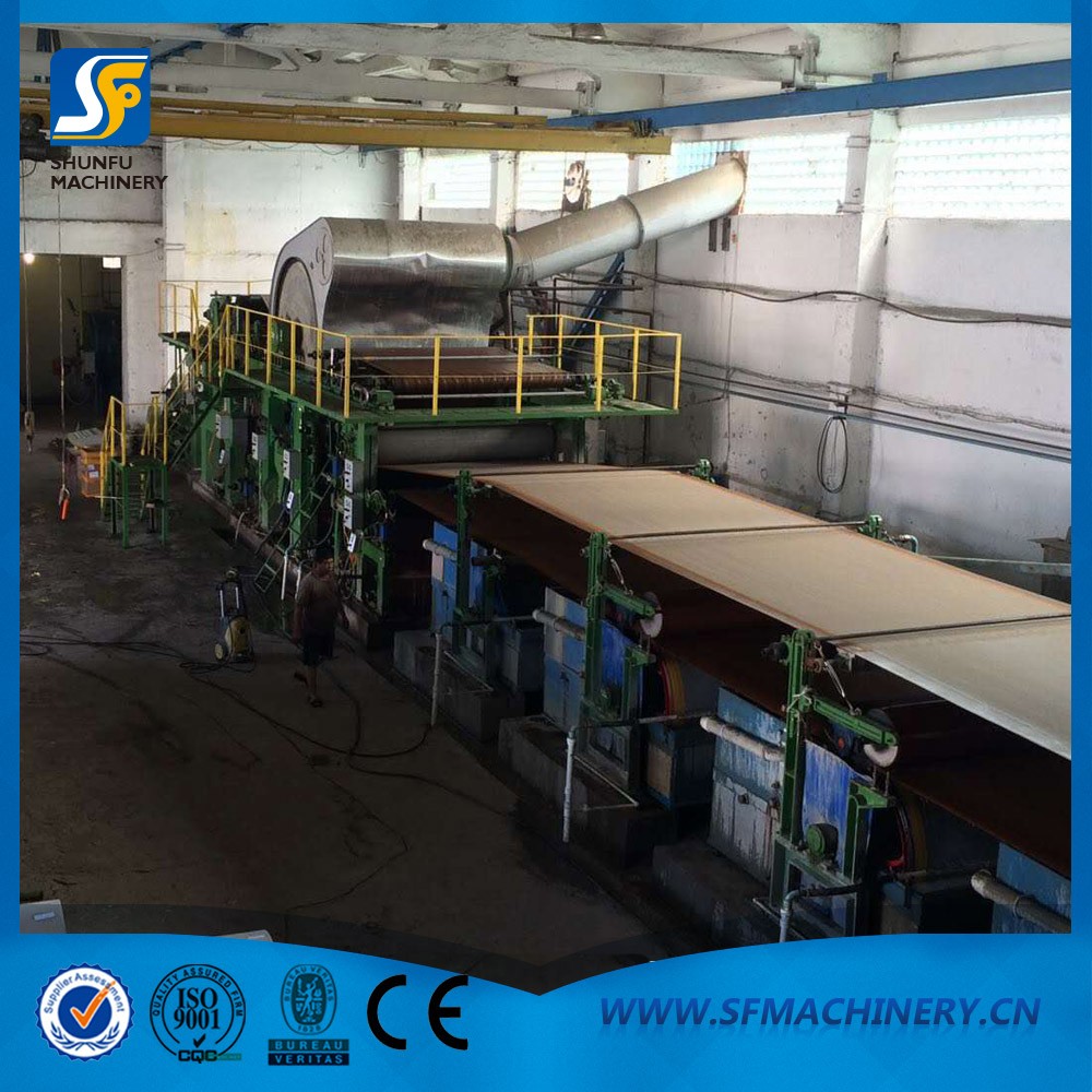 多圓網雙烘缸牛皮箱板紙機主要技術參數:抄造品種:瓦楞紙及牛皮箱板紙生產原料:廢紙再生漿、草漿、木漿抄造定量:120-450g...